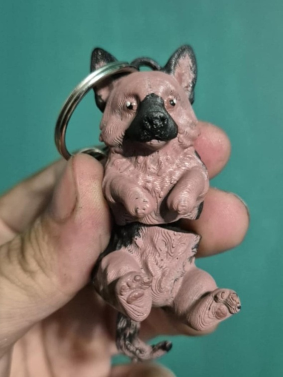 Brelok z wielkim sercem - ręcznie malowany Owczarek niemiecki, który porusza się i zachwyca detalem. Personalizowany, stworzony z miłości do tej pięknej rasy.